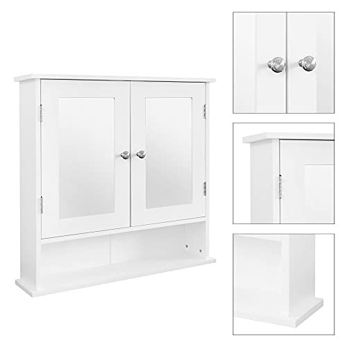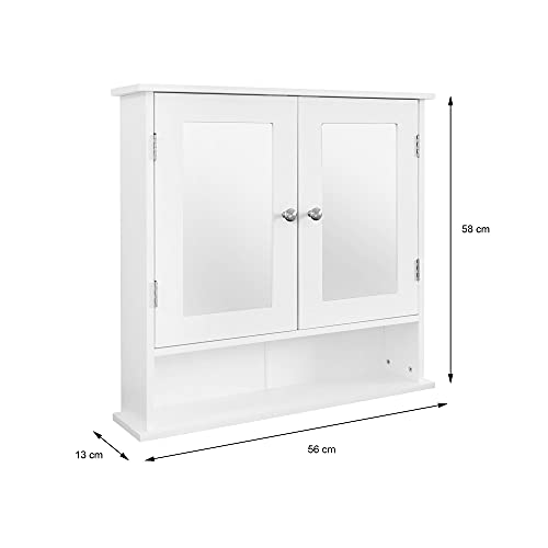 ML-Design Mobiletto Pensile da Bagno Armadietto a Specchio Contenitore con 2 Ante 56x58x13 cm Armadio da Parete Stile Country Shabby Mobile Portaoggetti Multiuso Salvaspazio Arredo in Legno MDF Bianco