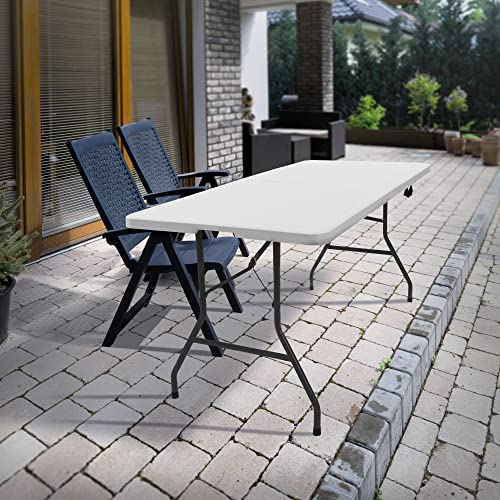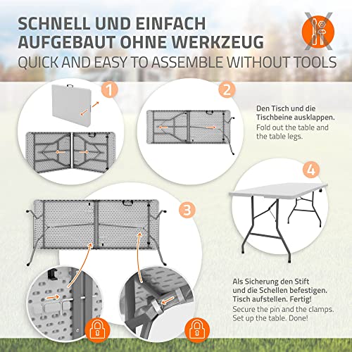 ML-Design Tavolo Pieghevole da Campeggio Buffet Giardino Terrazza Balcone Feste Fiere Rettangolare 180 x 74 x 74 cm Bianco in Plastica/Acciaio con Impugnatura Maniglia Facile Trasporto per 6 Persone