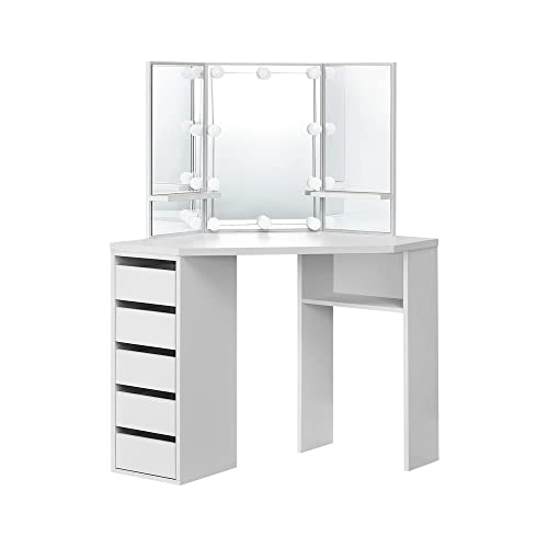 3 SPECCHI - Con 3 specchi integrali con effetto 3D, puoi vedere il tuo trucco da tutte le angolazioni. Lo spazio sotto la toeletta è abbastanza grande affinche' tu abbia spazio per le gambe e lo sgabello.