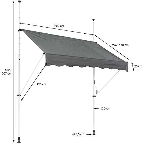 ML-Design Tenda da Sole per Balcone 200 x 120 cm Grigio Regolabile in Altezza Resistente ai Raggi UV con Manovella Manuale Tendalino Retrattile a Pinza Parasole per Terrazza in Metallo e Poliestere