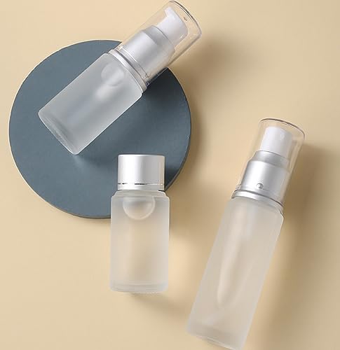3 pz 15 ml/15 g riutilizzabile in vetro opaco pompa da viaggio dispenser bottiglie cosmetiche barattoli per crema lozione articoli da toeletta, Traslucido., 15ML/0.5OZ