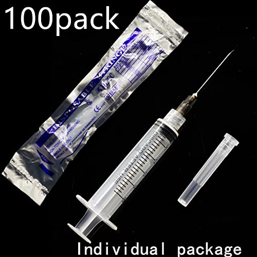 100 pz 5 ml/cc Plastica Sterili Siringhe con 22Ga, Confezionati Singolarmente Siringhe di Misurazione per Laboratori Scientifici, Iniettore per Animali Domestici, Erogazione di Inchiostro o Colla