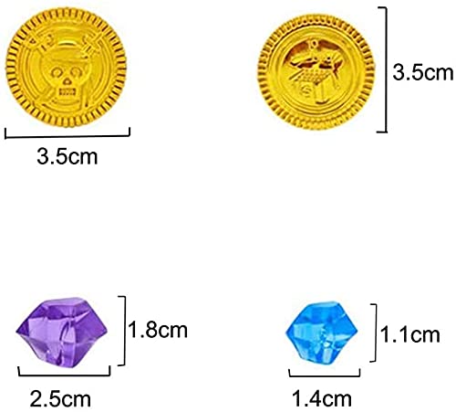 Materiale: le monete in oro pirata sono realizzate in plastica resistente. Le gemme pirata sono realizzate in acrilico, le monete in plastica dorata sono fresche. Le gemme in acrilico sono in colori assortiti, sembrano belle.
