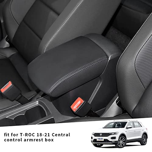 MLING Auto Centrale Bracciolo Copertura Protezione in Pelle PU Compatibile per T-ROC 2018 2019 (Nero)