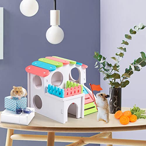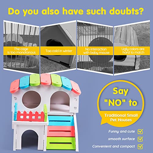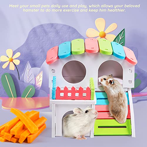 Mlloaayo Nascondigli per Criceti in Legno, Accessori Color Arcobaleno Design Villa Composta da Giocattoli con Ponte per Esercizi Divertente Capanna Vivente Nido per Piccoli Animali