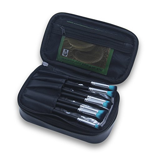 Dimensioni compatte con molte tasche e luoghi per conservare pennelli trucco e diversi piccoli trucco essenziali includono: Mascara, finitura in polvere, per, Lipgloss, Lipstain, ombretto, eyeliner, ombretto Primer, trucco salviette, polvere pressata, Blush e contorno.