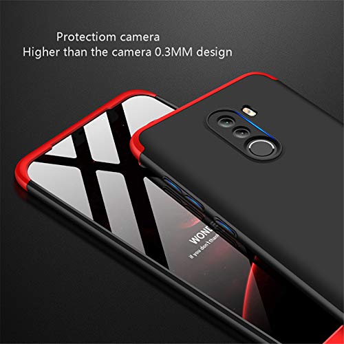 MLOTECH Cover per Xioami Pocophone F1, Cover+ vetro temperato 360 gradi Hard pc Custodia ultra protettiva Matte Anti shock anti-graffio Bumper Full Body Custodia Rosso nero