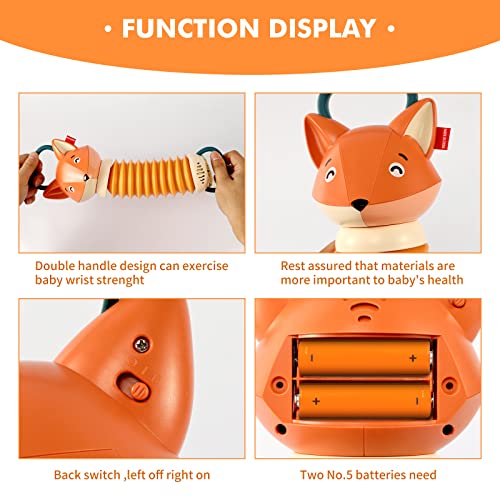 Meraviglioso primo regalo per bambini: Fox Accordion Sensory Toy è un ottimo modo per allenare i muscoli delle mani del tuo bambino attraverso il processo di stretching del giocattolo e promuovere lo sviluppo sensoriale dell'udito del tuo bambino attraverso una varietà di musica e il fruscio di carta scoppiettante, il primo regalo perfetto per il tuo bambino. (Richiede 2 x 1,5 V AA non incluse)