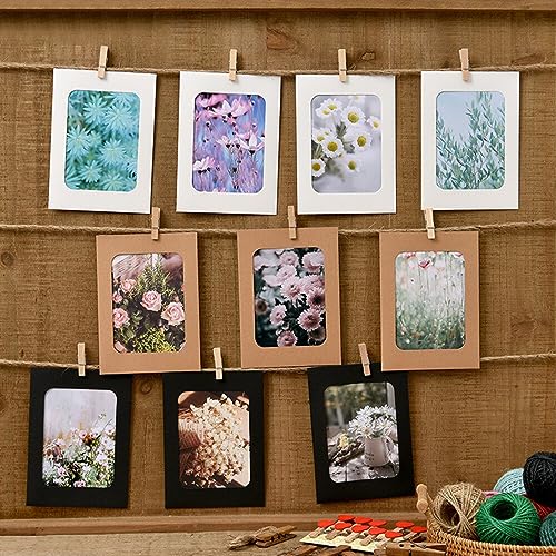 Mlysnd Appendi Foto, Appendi Foto con Mollette, 20 Pezzi Cornice per Foto in Carta Kraft con Clip in Legno e Cordoncino Set, per Casa Scuola Parete DIY Sospesa Decorazione, Pergamena