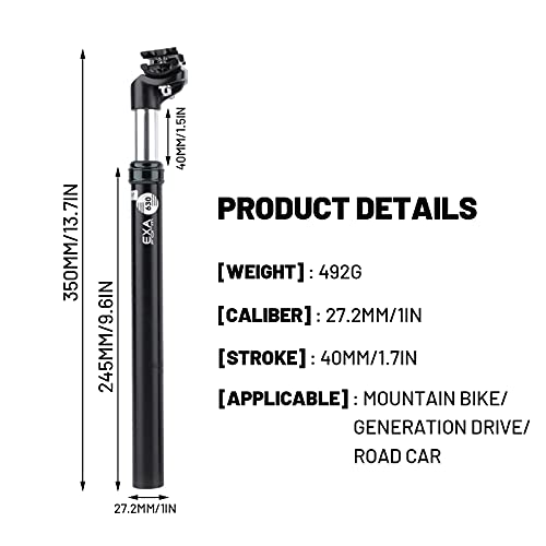 Ottimo assorbimento degli urti: la comoda sospensione ha un effetto antidolorifico sulla zona posteriore in quanto fornisce un assorbimento degli urti ottimale durante il ciclismo. Il reggisella con sospensione per bici, che ha un diametro di 1,1 pollici (27,2 mm) o 1,2 pollici (31,6 mm) e una lunghezza di 13,8 pollici (350 mm)