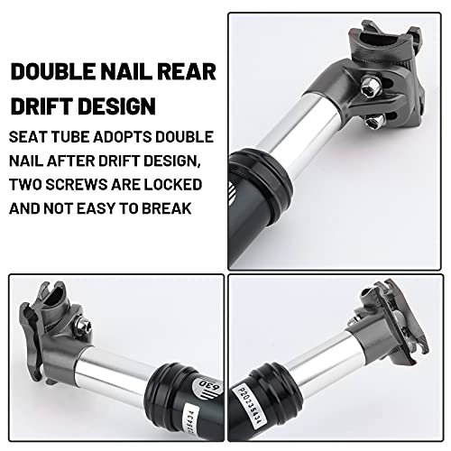 Varie applicazioni: questo reggisella per bici adatto per biciclette utility, mountain bike, biciclette da corsa, biciclette da turismo, biciclette BMX ecc. Progettato con un precarico regolabile sul fondo, il reggisella della bicicletta può cambiare la quantità di forza richiesta per assorbire meglio la vibrazione che ti fa guidare comodamente