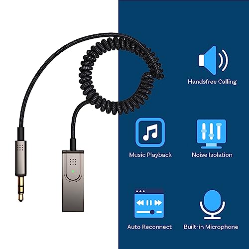 MMOBIEL Adattatore AUX Bluetooth USB - Ricevitore Bluetooth per Auto da 3,5 mm - Adattatore AUX BT - USB-A a jack da 3,5 mm con Microfono Ricevitore Wireless per Musica e Chiamate in Vivavoce