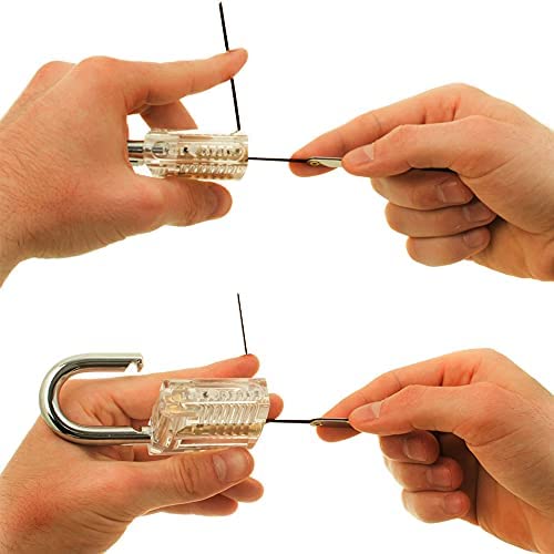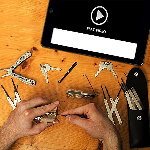 Materiale di alta qualità: questo kit viene fornito con una serratura trasparente pura che consente di vedere come i cilindri di serratura precisi funzionano sotto l'azione delle chiavi e di questi strumenti. Comprenderai meglio e più velocemente il funzionamento della legge sulle serrature. I manici dell'utensile per serrature sono realizzati in acciaio inossidabile di alta qualità con un rivestimento nero che è molto resistente e durevole.