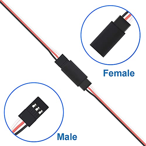 Applicazioni Questi cavi di prolunga per servocomandi sono compatibili con i servocomandi Futaba e JR e possono essere utilizzati per i droni, auto, aerei, elicotteri, robot, autocarri, buggy fuoristrada e altro radiocomandati. Possono essere usati per controllare due servocomandi contemporaneamente.