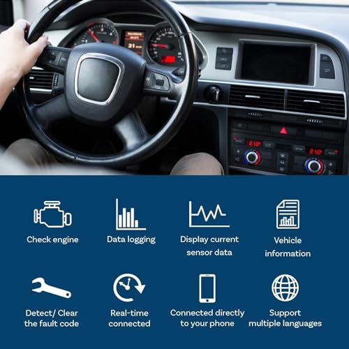 Compatibile con Android e iOS - Lo scanner funziona con applicazioni OBD di terze parti come DashCommand, Torque, Infocar, Auto doctor, Four Stroke o OBD Fusion. L'efficacia dello scanner può essere influenzata dallo specifico software di terze parti scelto. Se lo scanner non funziona, il passaggio a un'altra applicazione potrebbe risolvere il problema.