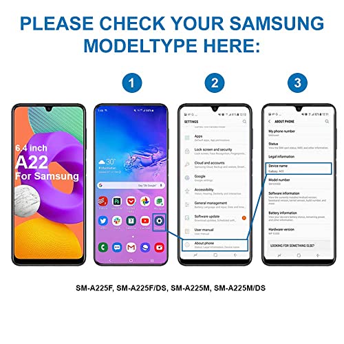 Compatibile con Samsung Galaxy A22 5G SM-A226B, SM-A226B/DS, SM-A226B/DSN 2021 Importante si prega di controllare il numero di modello del dispositivo prima di acquistare questo articolo. Potete trovare il tipo di modello del vostro apparecchio sul vostro apparecchio e/o nelle impostazioni.