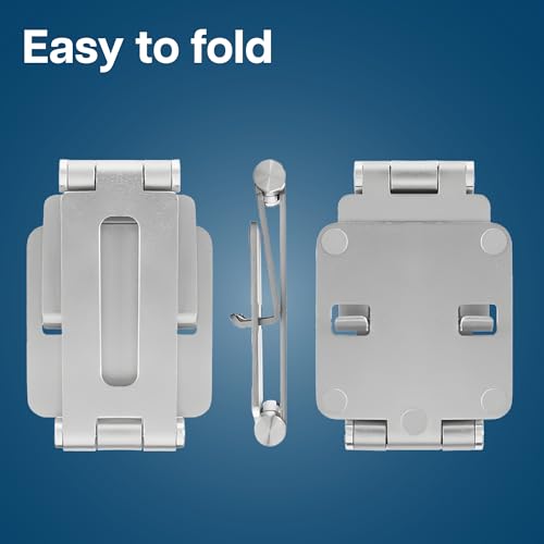 Facile da Portare con sé - A causa delle 2 cerniere, il supporto universale per telefoni e tablet può essere ripiegato fino a 11 x 7,5 x 2 cm. Questo formato compatto può essere facilmente riposto in tasca, nel cassetto o nella borsa. In dotazione c'è anche una piccola custodia in nylon che protegge il supporto e lo rende facile da riporre quando non viene utilizzato. Queste pratiche caratteristiche rendono il supporto estremamente comodo da portare con sé.