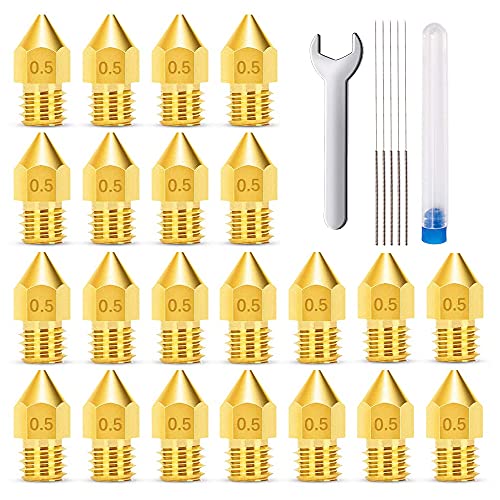 MMOBIEL 20 pz. ugelli estrusore E3D per stampante da 0,5 mm in ottone E3D V5-V6 3D per filamento da 1,75 mm inclusi chiave M7 e 5 aghi per pulizia