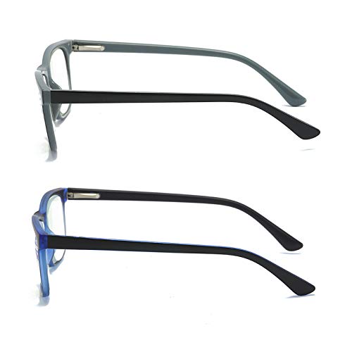 MMOWW Confezione da 2 Occhiali da Lettura Donna Uomo, Anti Luce Blu Rettangolari Occhiali con Cerniere a Molla (Grigio + Blu Scuro, 2.5)