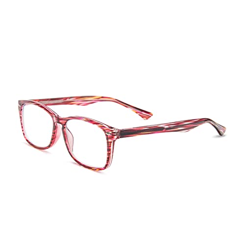 MMOWW Occhiali da lettura Rettangolari Donna Uomo Cerniere a molla, moda occhiali da computer anti affaticamento alla luce blu (Rosso, 3.0)