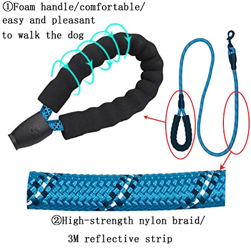 BEQUEME GEPOLSTERTE SCHAUMSTOFFGRIFFE: Verfügt über weich gepolsterte, ergonomisch geformte Griffe für zusätzlichen Komfort. Bietet einen festen Halt, ohne an der Hand zu reiben und Seilverbrennungen zu verursachen. Diese Hundeleine wird es nicht lange dauern, bis Sie uns für den Komfort dieses Griffs danken, wenn Sie einen großen Hund haben und ihn beim Gehen häufig zurückhalten müssen.