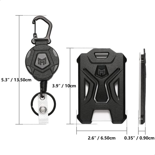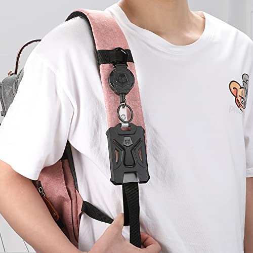 MNGARISTA Porta badge retrattile, portachiavi a moschettone resistente, supporto tattico per carte d'identità con bobina retrattile da 80 cm, nero