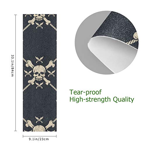 MNSRUU - Nastro antiscivolo per skateboard, con teschi, carta vetrata per scooter Rollerboard, 22,8 x 83 cm