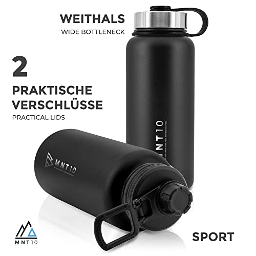 MNT10 Bottiglia in Acciaio Inossidabile 1000ml I Bottiglia Isolante Premium per Escursioni, Scuola e Ufficio I Bottiglia d'Acqua + Tappo Sportivo Gratuito (Nero Mezzanotte | 1000ml)