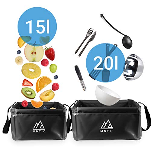 MNT10 Ciotola Pieghevole da Esterno da 15L o 20L I Ciotola da Campeggio Pieghevole in Tessuto Resistente I Utilizzabile come Ciotola per Lavare, Lavandino da Campeggio o Secchio Pieghevole (Nero 20L)