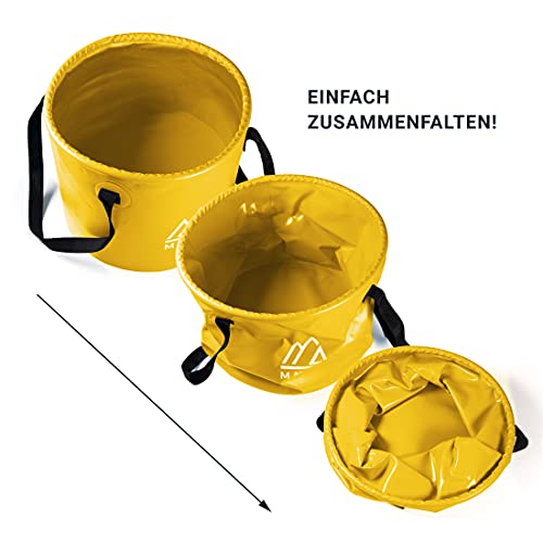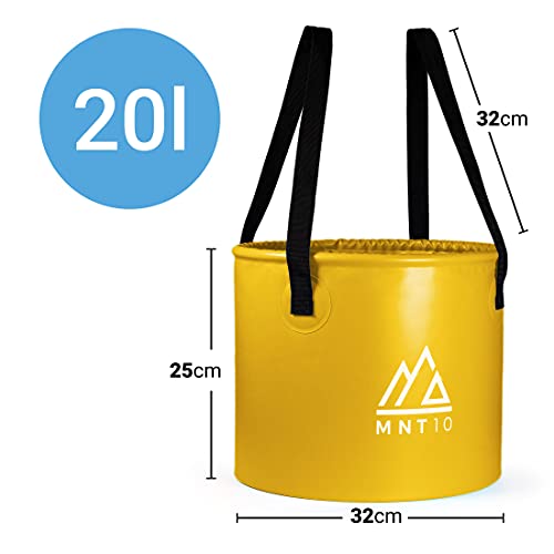 MNT10 Secchio Pieghevole da Esterno da 15L o 20L I Ciotola Pieghevole in Tessuto Resistente I Come Lavabo da Campeggio, Lavandino o Secchio Pieghevole per Stoviglie da Campeggio, Posate (Giallo 20L)