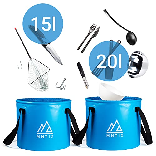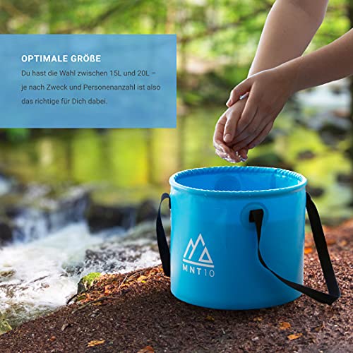 MNT10 Secchio Pieghevole da Esterno da 15L o 20L I Ciotola Pieghevole in Tessuto Resistente I Come Lavabo da Campeggio, Lavandino o Secchio Pieghevole per Stoviglie e Posate da Campeggio (Blu 20L)