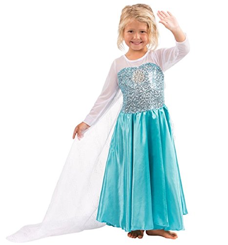 Mntllbnc costume frozen elsa taglia 120 5-6 anni regina delle nevi vestito con strascico bianco bimba dress girl glitter bambina