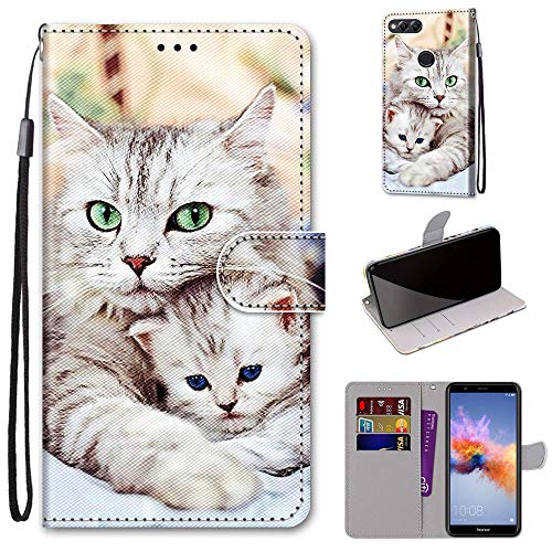 Mo-Somnus Cover per Huawei Honor 7X, Custodia in PU Pelle Magnetica Libro Flip Caso Antiurto Portafoglio [Supporto Stand] con Porta Carte e Cinturino da Polso Wallet Protettiva Case (Gatti 2)