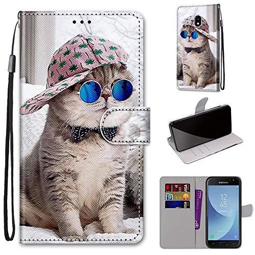 Mo-Somnus Cover per Samsung Galaxy J3 2017/ J330, Custodia in PU Pelle Magnetica Libro Flip Caso Antiurto Portafoglio [Supporto Stand] con Porta Carte e Cinturino da Polso Wallet Case (Gatti 4)