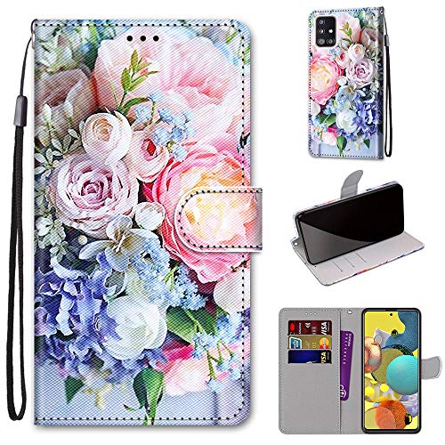 Mo-Somnus Cover per Samsung Galaxy A51 5G, Custodia in PU Pelle Magnetica Libro Flip Caso Antiurto Portafoglio [Supporto Stand] con Porta Carte e Cinturino da Polso Wallet Case (Fiore 3)