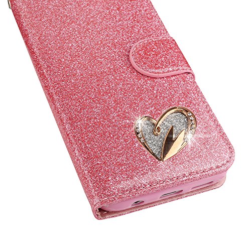 Mo-Somnus Custodia Compatibile Samsung Galaxy S7 [con Pellicola in Vetro Temperato], Portafoglio Glitter Bling Libro Pelle PU Flip Caso Magnetica Supporto Cover (Rosa)