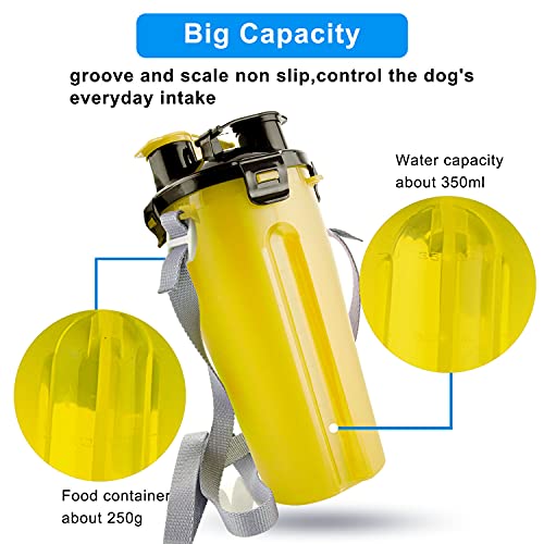 MOACC Bottiglia d'Acqua e Cibo per Cane, Bottiglia Viaggio Portatile con 2 Pieghevole Ciotola per Passeggiare, Viaggio, Turismo A Piedi, Campeggio (Giallo)