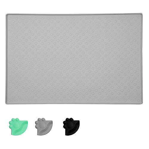 MOACC Tappetini Sottociotola per Cani, Tappetino per Ciotola di Cibo Antiscivolo per Animali con Disegni di Zampe Perfetto per Proteggere Il Pavimento da Liquidi(Grigio Paw Pattern, 47 x 30 cm)