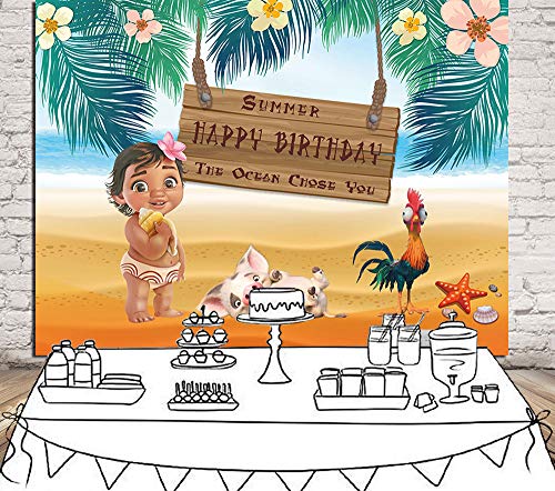 Moana Sfondo estivo Buon Compleanno Mare Estate Fotografia Tropicale Sfondo Moana 1 ° Festa di Compleanno Baby Shower Decorazione 1 x 7 FT