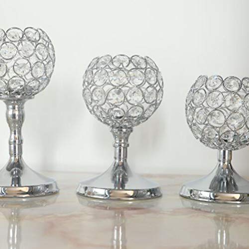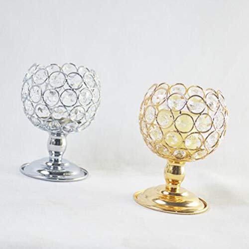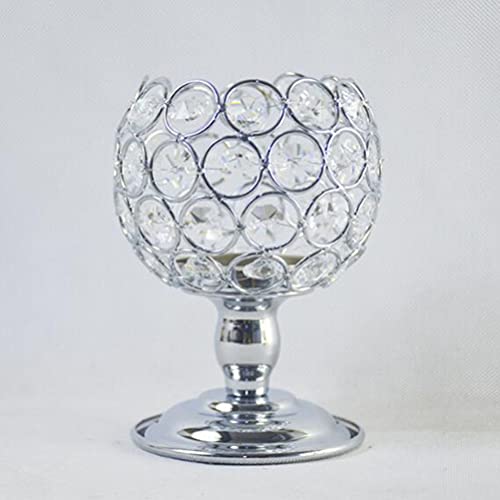 Mobestech portacandele in Cristallo Luce per tè in Cristallo candelabri in Cristallo Argento per la Festa a casa (2 Pezzi 10 cm)