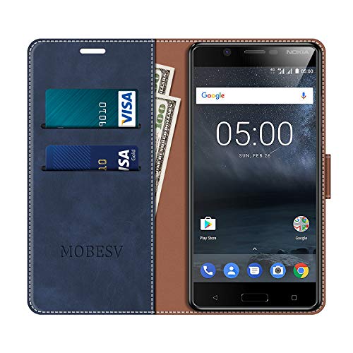 MOBESV Custodia Nokia 5, Cover a Libro Nokia 5, Custodia in Pelle Nokia 5 Magnetica Cover per Nokia 5, Elegante Blu