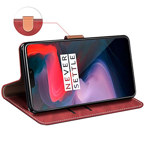 MOBESV Custodia Oneplus 6, Cover a Libro Oneplus 6, Custodia in Pelle Oneplus 6 Magnetica Cover per Oneplus 6, Rosso