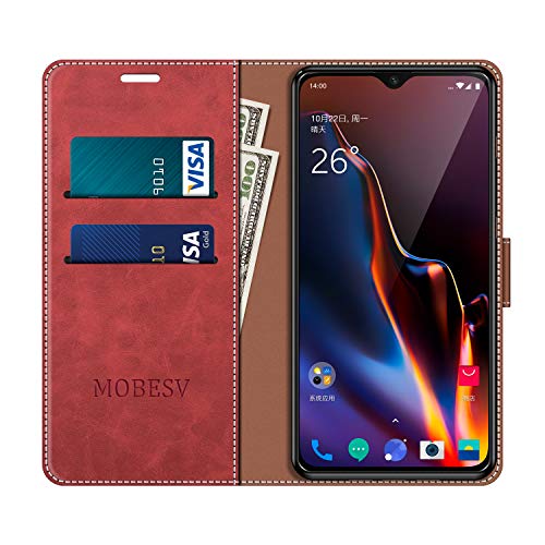 MOBESV Custodia Oneplus 6T, Cover a Libro Oneplus 6T, Custodia in pelle Oneplus 6T Magnetica Cover Per Oneplus 6T, Rosso