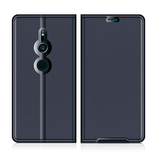 MOBESV Custodia in Pelle Sony Xperia XZ2, Custodia Sony Xperia XZ2 Cover Libro/Portafoglio Porta Per Cellulare Sony Xperia XZ2 - Blu Scuro