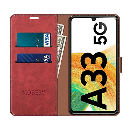 MOBESV Custodia Samsung Galaxy A33 5G, Cover a Libro Samsung Galaxy A33 5G, Custodia in Pelle Samsung Galaxy A33 5G Magnetica Cover per Samsung Galaxy A33 5G, Elegante Rosso