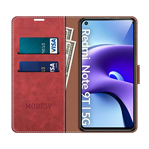 MOBESV Custodia Xiaomi Redmi Note 9T 5G, Cover a Libro Xiaomi Redmi Note 9T 5G, Custodia in Pelle Xiaomi Redmi Note 9T 5G Magnetica Cover per Xiaomi Redmi Note 9T 5G, Elegante Rosso