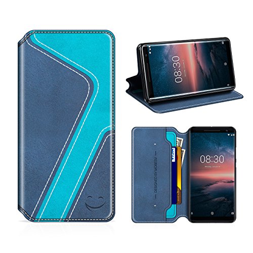 MOBESV Smiley Custodia in Pelle Nokia 8 Sirocco, Custodia Nokia 8 Sirocco Cover Libro/Portafoglio Porta per Cellulare Nokia 8 Sirocco - Blu Scuro/Aqua
