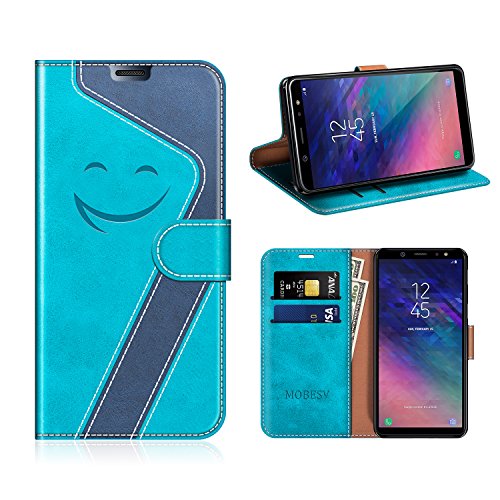 MOBESV Smiley Custodia in Pelle Samsung Galaxy A6 2018, Custodia Magnetica Samsung Galaxy A6 2018 Cover Libro/Portafoglio Porta Per Cellulare Samsung Galaxy A6 2018, Aqua/Blu Scuro