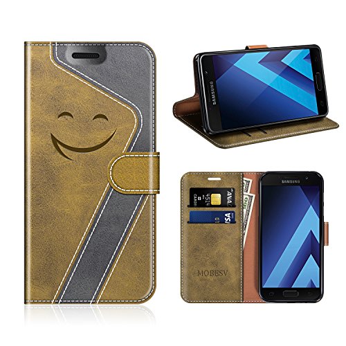 MOBESV Smiley Custodia in Pelle Samsung Galaxy A5 2017, Custodia Magnetica Samsung A5 2017 Cover Libro/Portafoglio Porta Per Cellulare Samsung Galaxy A5 2017, Oliva/Nero