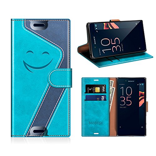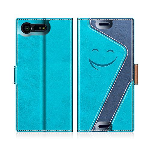MOBESV Smiley Custodia in Pelle/Portafoglio Cover per Sony Xperia X Compact, Aqua/Blu Scuro